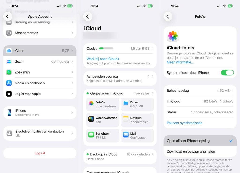 Wil je opslag vrijmaken zonder bestanden te verliezen, dan kun je gegevens naar de cloud verplaatsen. Alles wordt dan online opgeslagen en blijft altijd toegankelijk. De eenvoudigste plek om te beginnen is iCloud-foto’s, omdat direct werkt met de Foto’s-app en geen extra downloads vereist. Zo kun je ruimte vrijmaken op je iPhone: