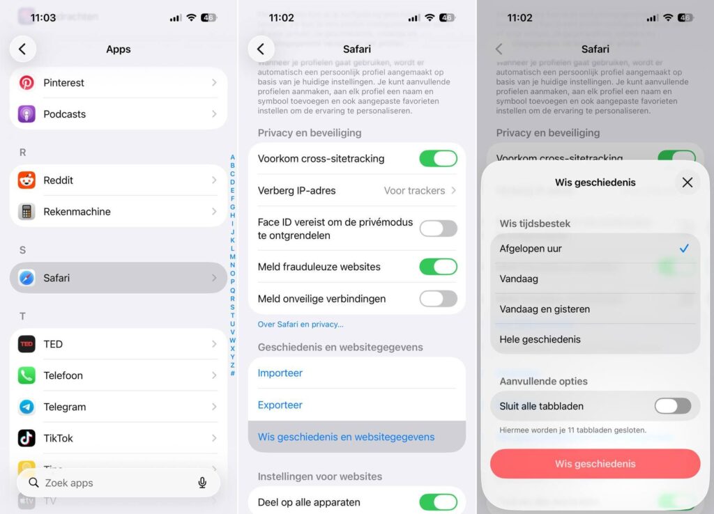 Gebruik je een andere browser als hoofdapp? Dan werkt het principe hetzelfde en moet je de cache wissen via de instellingen van die app, meestal onder een optie zoals Browsegegevens wissen.