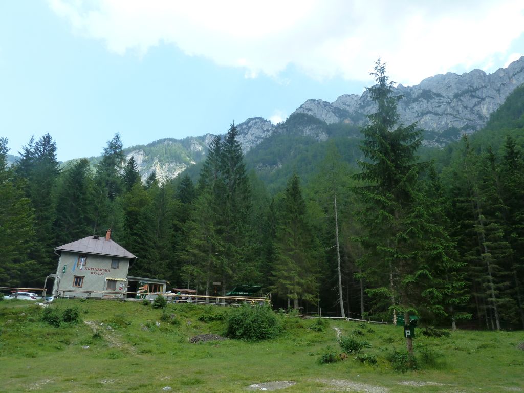 In praktijk blijkt dat echter makkelijker gezegd dan gedaan. Het resulteert in een onmogelijke zoektocht over smalle zandpaadjes waar de auto nog net op past en onze navigatie helaas het spoor bijster is. Uiteindelijk belanden we bij de berghut Kovinarska koča. Een schitterende lunchplek waar we genieten van Sloveense bonensoep met een adembenemend uitzicht op imposante bergtoppen en een alpenweide met ronddwalende koeien.