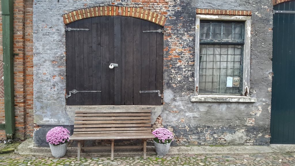 Elburg heeft nog steeds zijn middeleeuwse rechthoekige stratenpatroon dat gebaseerd is op het principe van de gulden snede. Verdwalen is onmogelijk, want de vesting is slechts 250 bij 350 meter groot. Klein maar fijn, want er is genoeg te zien. Flanerend over de middeleeuwse kinderkopjes geniet ik van pittoreske doorkijkjes, versierde voordeuren en mooie hofjes. De meeste ‘voortuintjes’ staan boordevol bloempotten en andere decoratie.