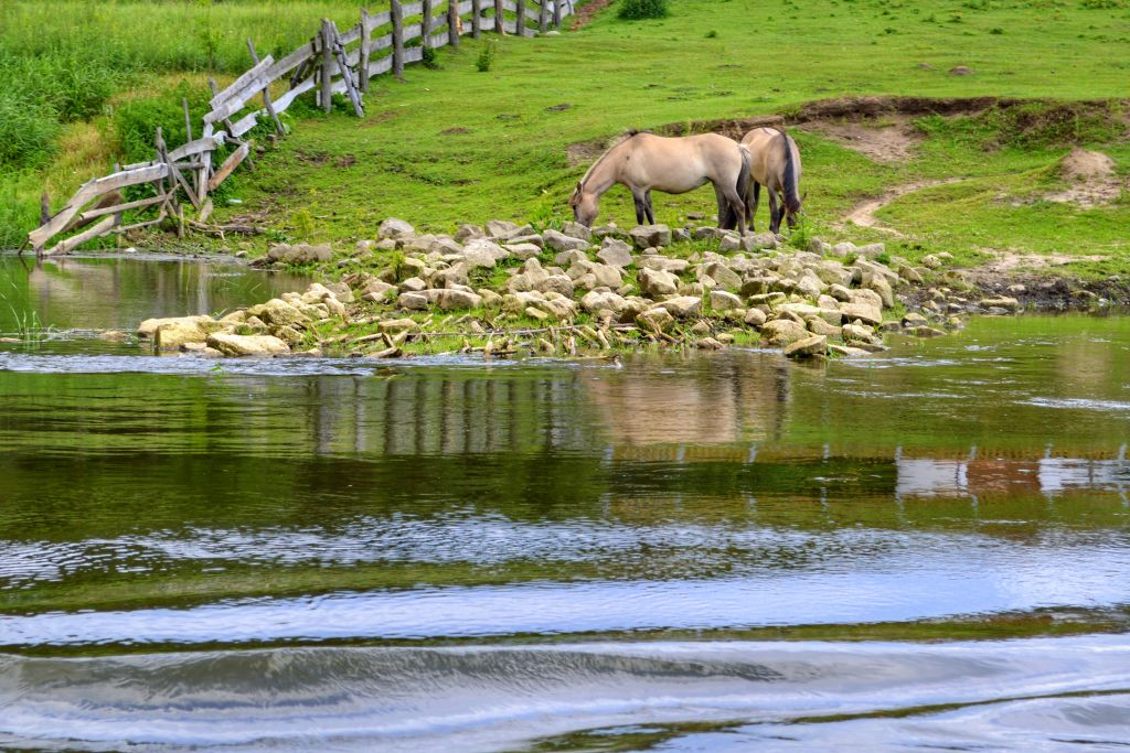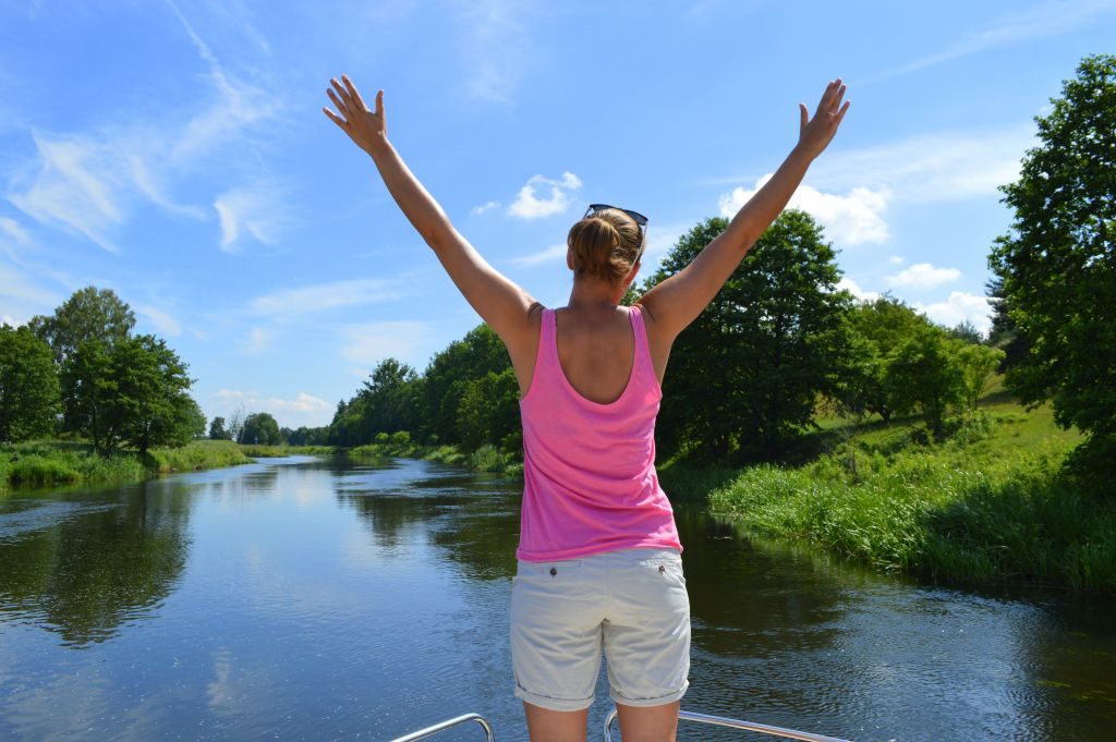 Met warme zonnestralen op mijn gezicht en de wind in mijn haren, staar ik dromerig naar het landschap dat langzaam aan me voorbij trekt. Langs de groene oevers wisselen grazende paarden en koeien elkaar af. Zo nu en dan varen we langs een paar huizen of langs een verdwaalde visser aan de waterkant. Vanaf de oever word ik aangestaard door een hertje, dat vervolgens weer vrolijk weg dartelt.