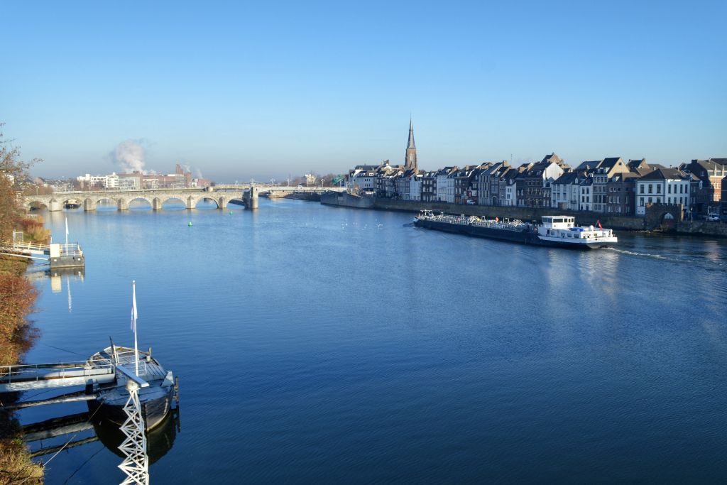 Wandel vanuit het pittoreske Jekerkwartier over de moderne Hoge Brug naar de rechteroever van de Maas. Hoewel de historische Sint Servaasbrug het bekendste icoon van de stad is, is het uitzicht op de Maas en de Maastrichtse skyline vanaf de Hoge Brug misschien nog wel mooier.